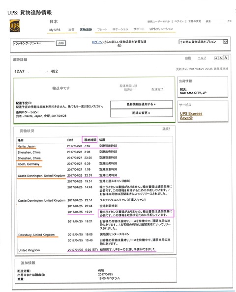 Upsでのアメリカから日本への配送追跡ステータスの流れ一覧 トラッキング Lancork